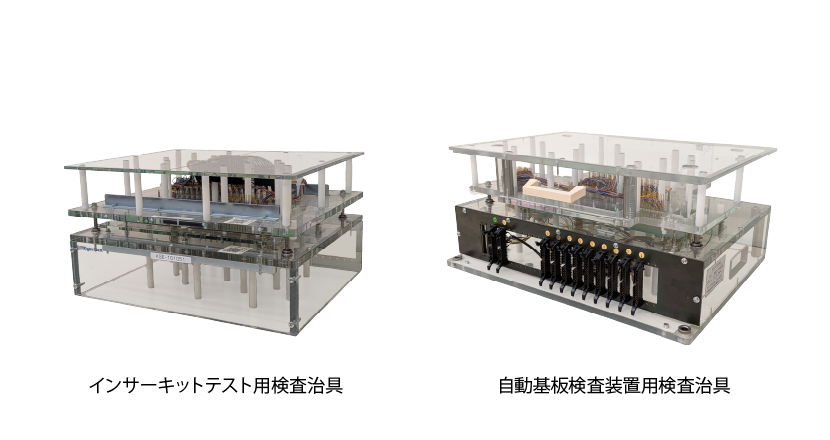 インサーキットテスト及びファンクションテスト用検査治具は、検査装置により電子基板の導通・機能検査を行う際、ワークに応じて製作する治具となります。