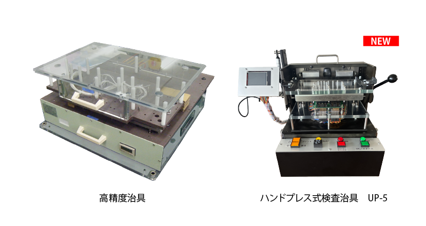 プローブコンタクトによる基板の歪(ひずみ)を抑え、直行率向上のため従来型の治具から構造変更や従来材料からの変更により精度を向上させたタイプの高精度検査治具をラインナップに加えています。