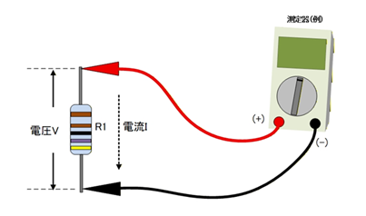 - R1の両端の電位差(電圧)を測定します。